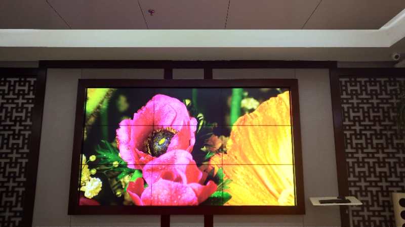 這套液晶拼接屏采用壁掛式安裝,并且進行包邊,從前面看與墻面融為一體,更顯高端、大氣,屏幕分辨率極高,其中單塊屏的分辨率高達1920×1080P,3x3點對點組合,達到6K超清顯示效果。