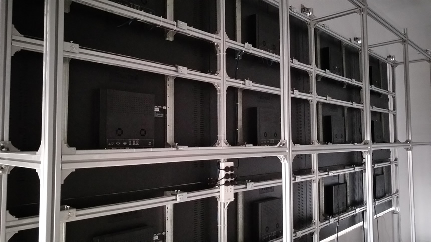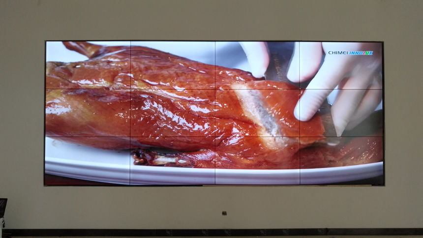 該套液晶拼接顯示系統(tǒng)由3行4列55寸液晶拼接屏組成,采用3.5mm超窄邊設(shè)計(jì)、壁掛式安裝方式。