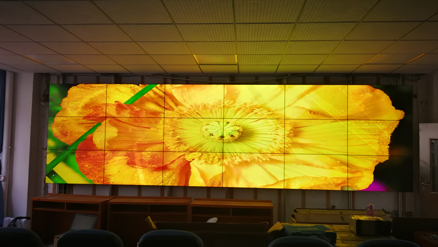 對于升級教學(xué)設(shè)備,提高教學(xué)質(zhì)量是教學(xué)勢在必行的過程。近日,該學(xué)校某學(xué)院的一個多媒體教室進(jìn)行升級改造,在大屏幕顯示方面,淘汰了傳統(tǒng)的投影顯示設(shè)備,在經(jīng)過層層的篩選后,最終采用了由愛普樂為其提供的大屏幕顯示系統(tǒng)解決方案,這套系統(tǒng)主要由三行六列的46寸液晶拼接屏和控制系統(tǒng)組成,拼接單元之間的雙邊物理拼縫僅有1.7mm,可以完美展現(xiàn)出(長≈6米11:高≈1米72)大屏幕畫面。